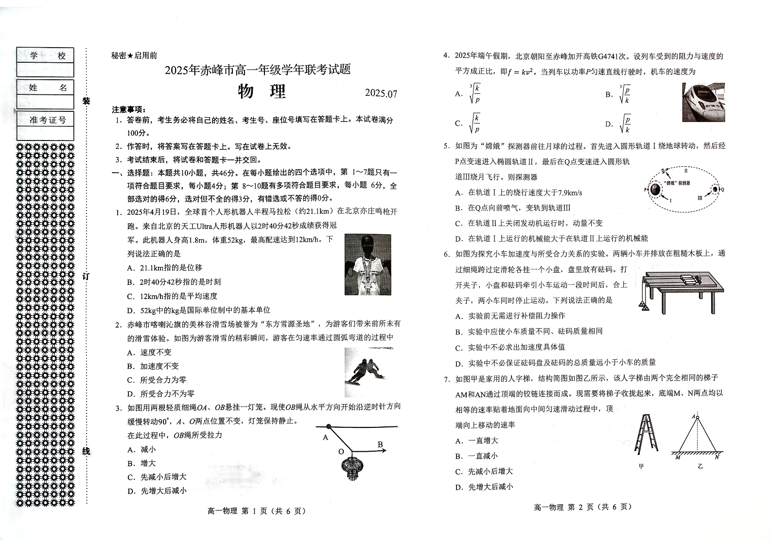 2025年赤峰市高一年级学年联考试题 物理.pdf