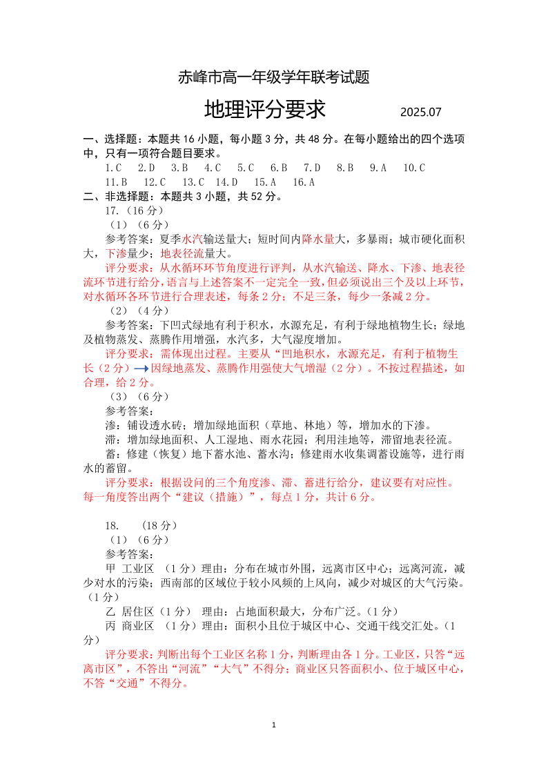 2025年赤峰市高一年级学年联考试题 地理答案.pdf