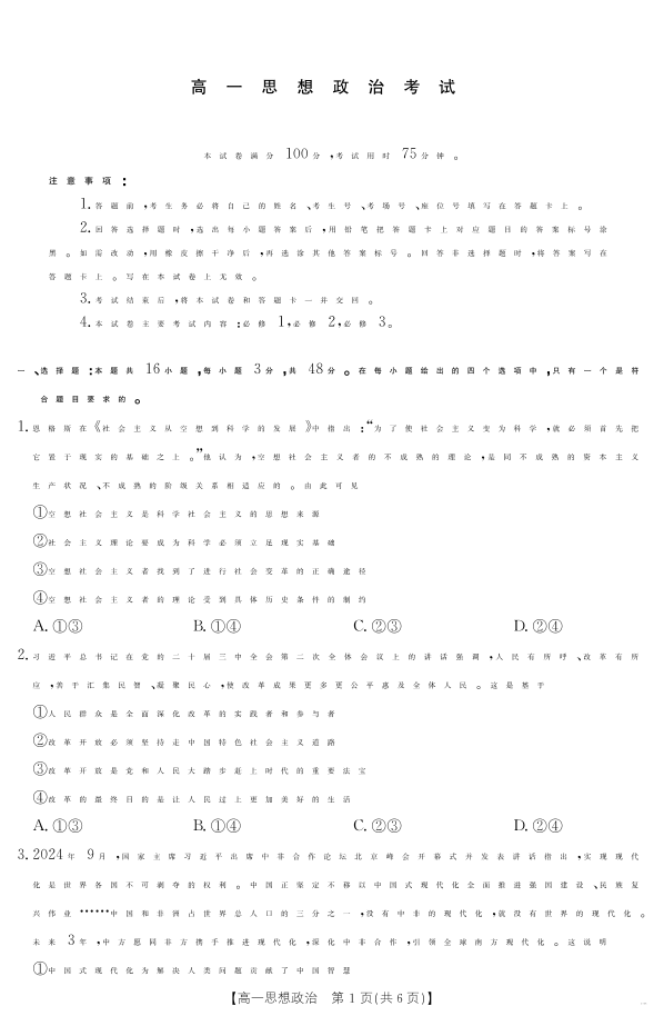 内蒙古2024~2025学年度高一下学期期末考试 思想政治.pdf