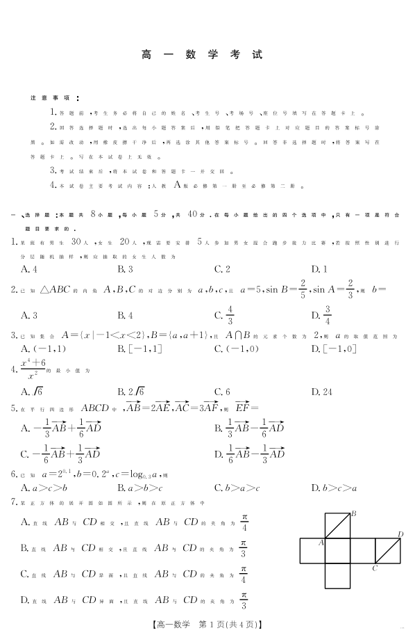 内蒙古2024~2025学年度高一下学期期末考试 数学.pdf