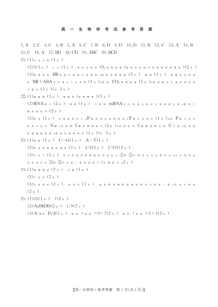 内蒙古2024~2025学年度高一下学期期末考试 生物学答案.pdf