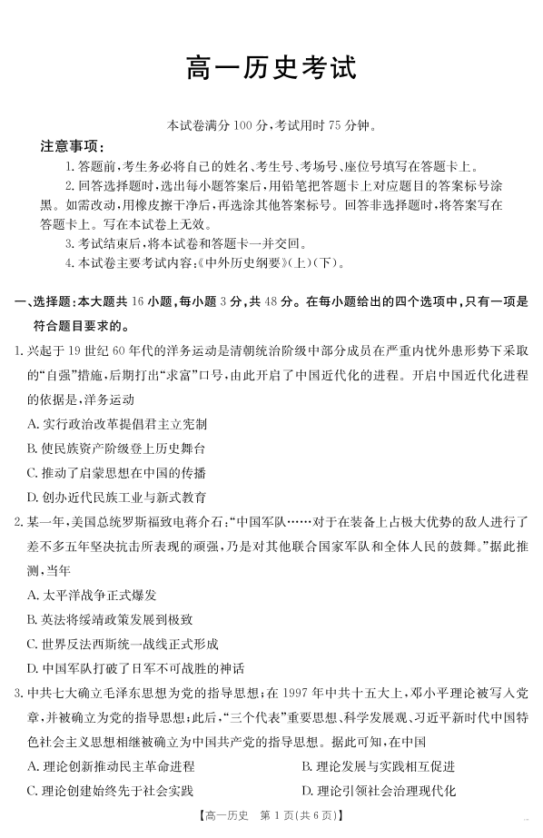 内蒙古2024~2025学年度高一下学期期末考试 历史.pdf