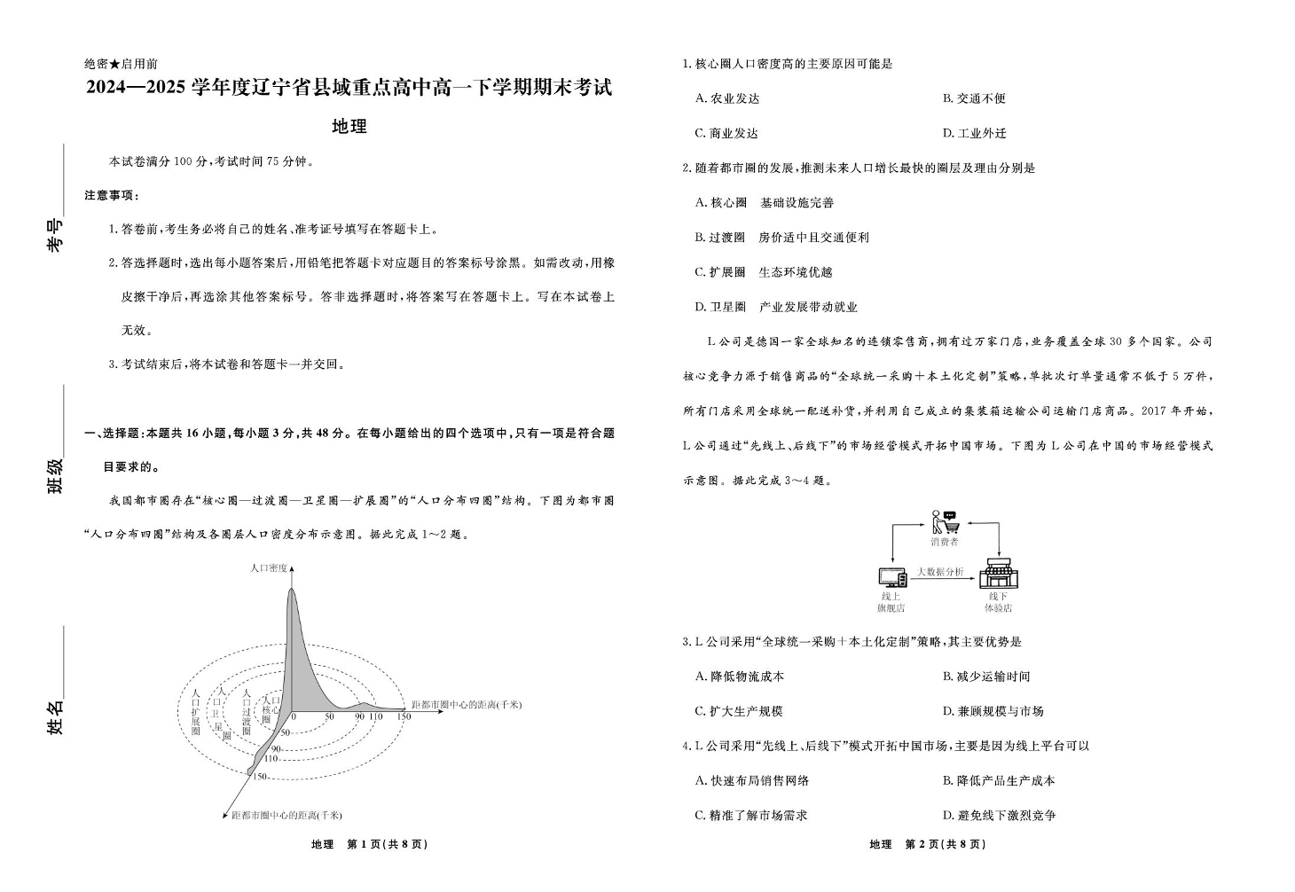 辽宁省县域重点高中2024-2025学年度高一下学期期末考试 地理试卷(含答案).pdf
