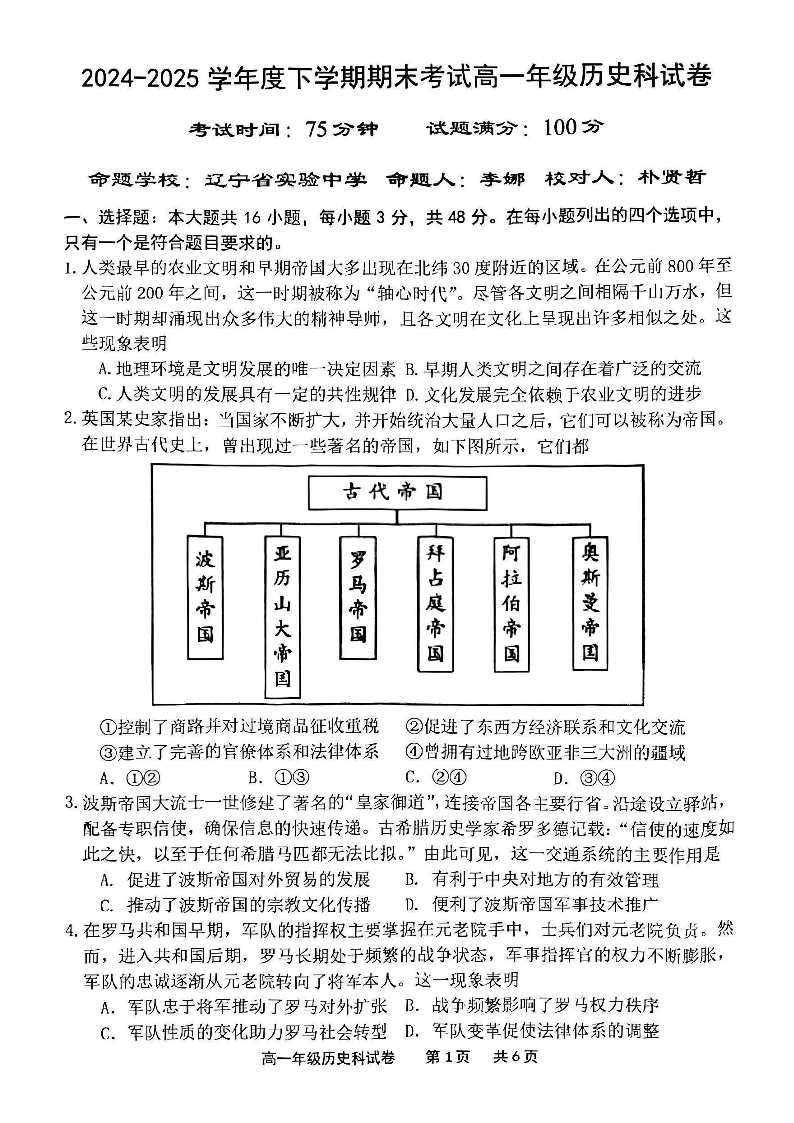 辽宁省五校联考2024-2025学年度下学期高一年级期末考试 历史试卷(含答案).pdf