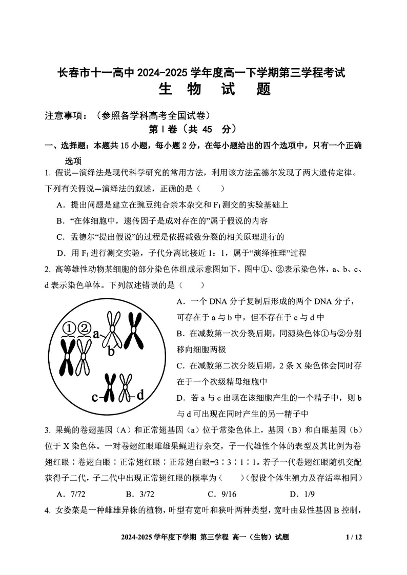 长春市十一高中2024-2025学年高一下学期第三学程考试(期末)生物试卷(含答案).pdf