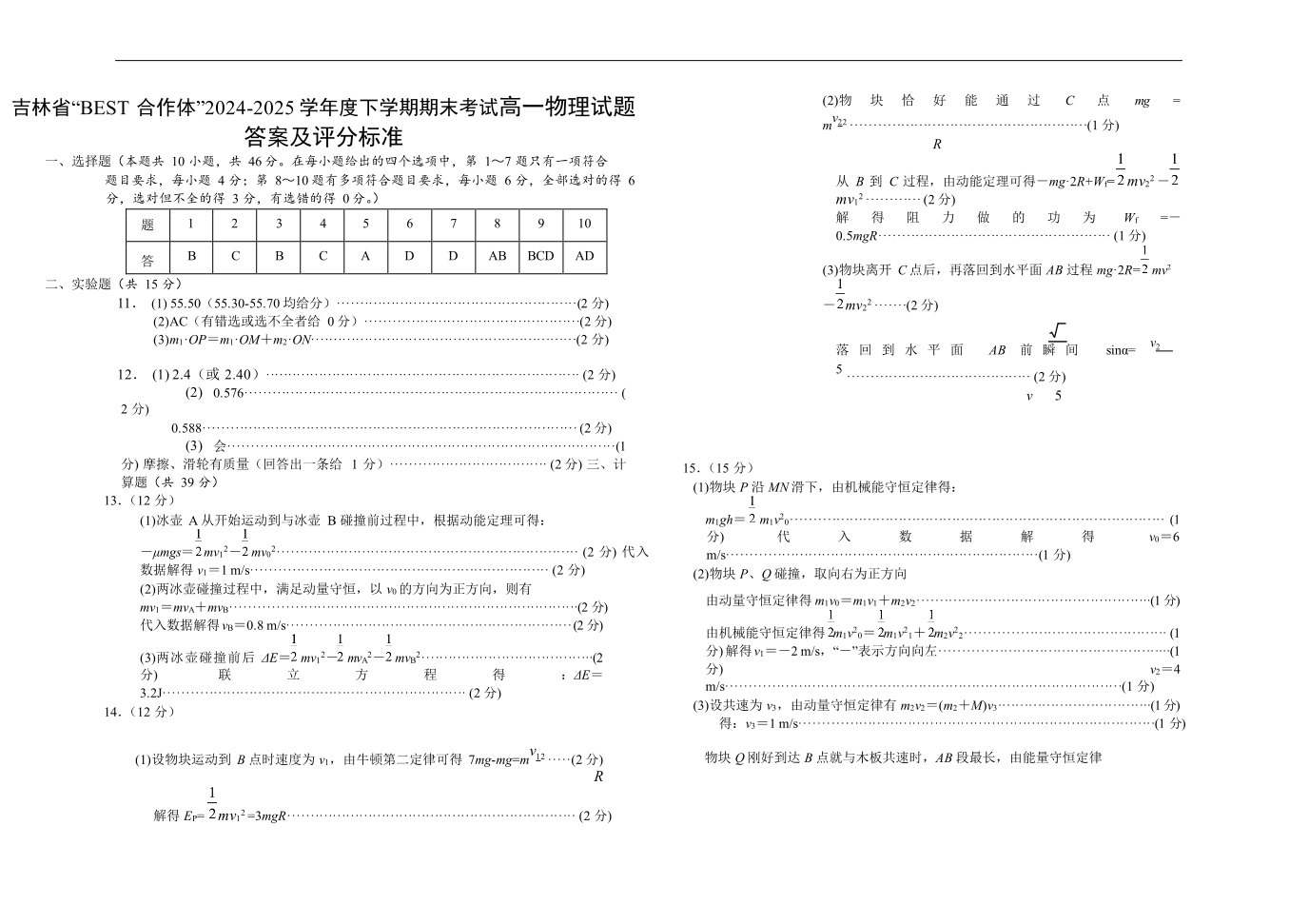 吉林省“BEST合作体”2024-2025学年高一下学期7月期末 物理答案.pdf