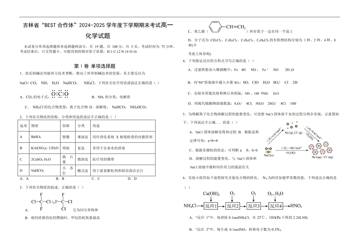 吉林省“BEST合作体”2024-2025学年高一下学期7月期末 化学.pdf