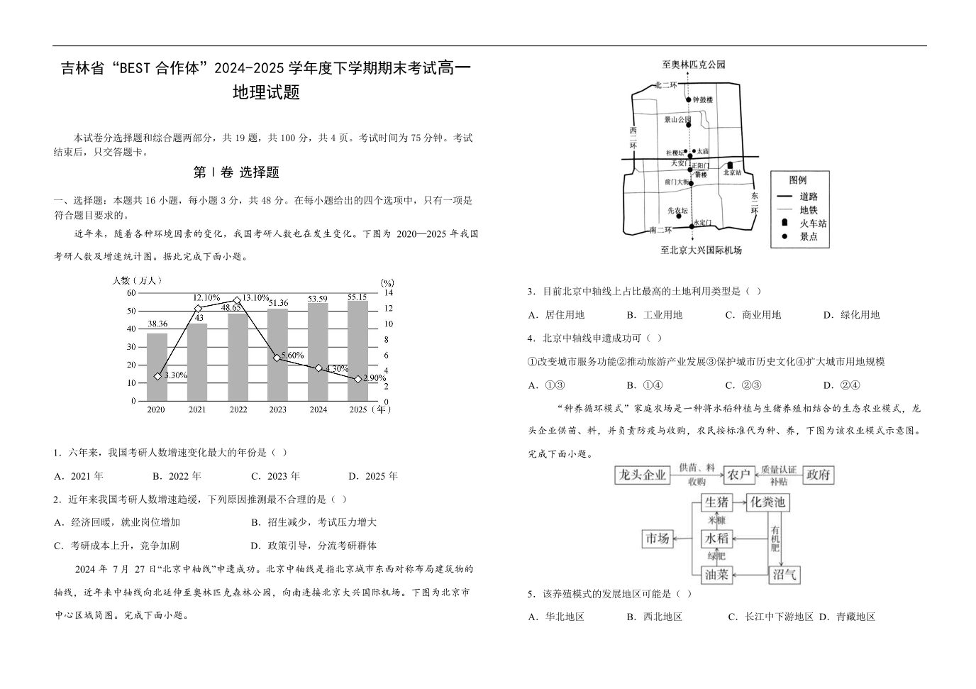 吉林省“BEST合作体”2024-2025学年高一下学期7月期末 地理.pdf