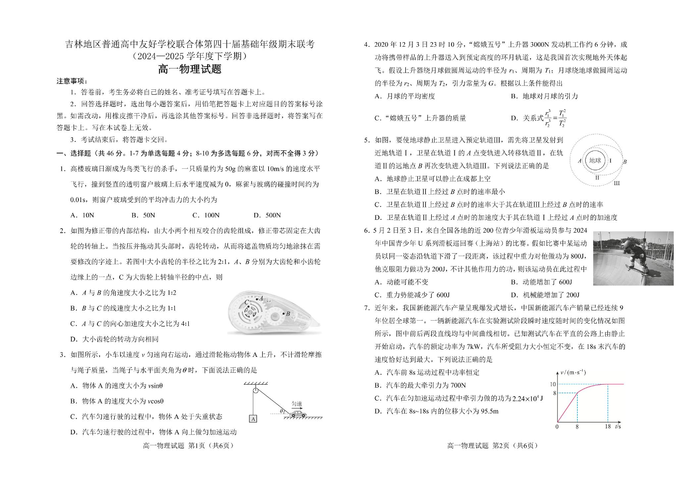 吉林地区普通高中友好学校联合体2024-2025学年高一下学期期末考试 物理试卷(含答案).pdf