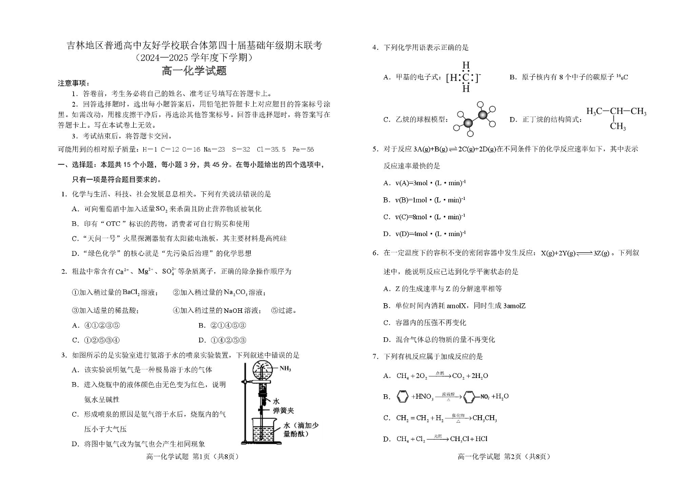 吉林地区普通高中友好学校联合体2024-2025学年高一下学期期末考试 化学试卷(含答案).pdf