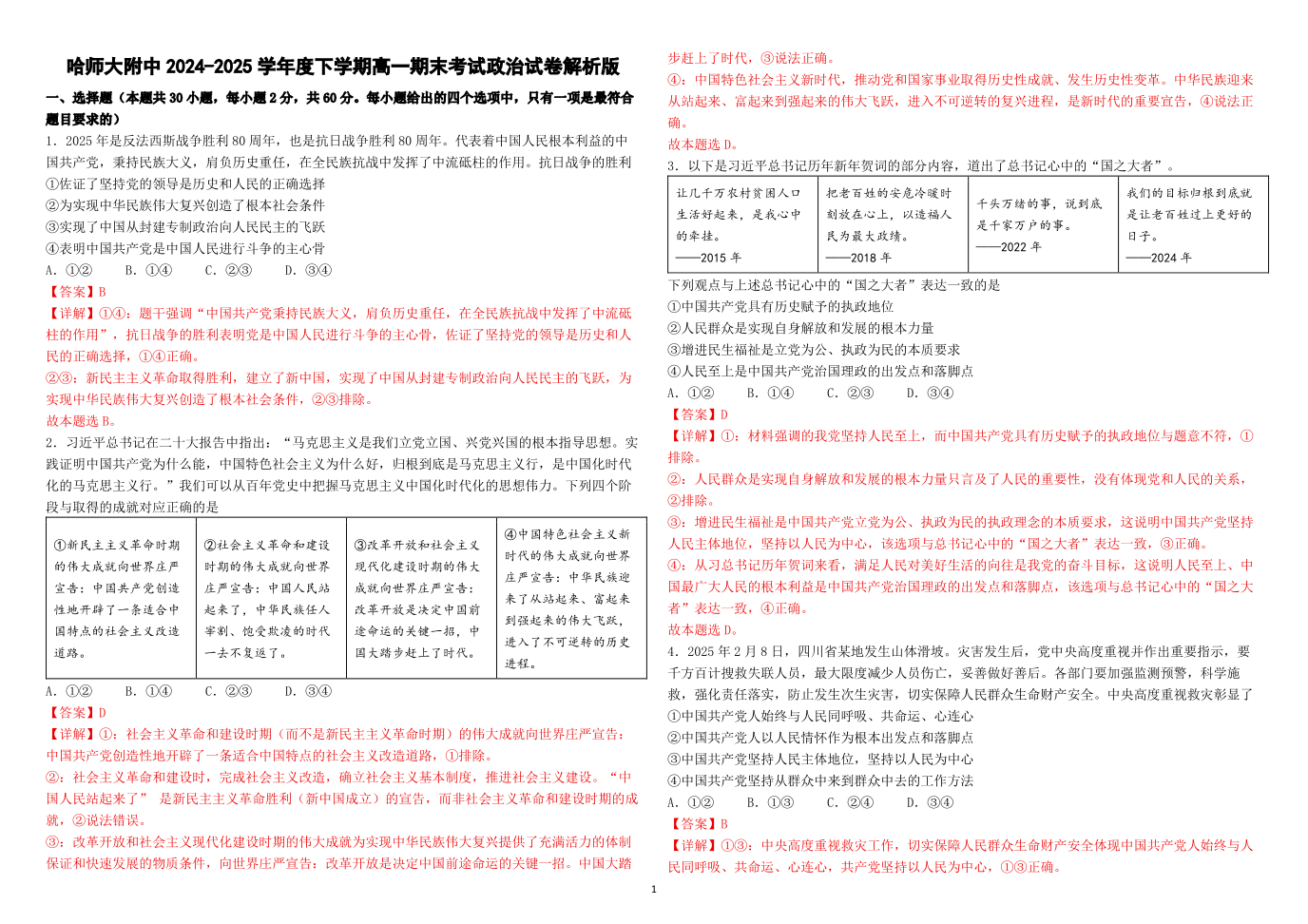 哈师大附中2024~2025学年度下学期高一期末考试 政治答案.pdf