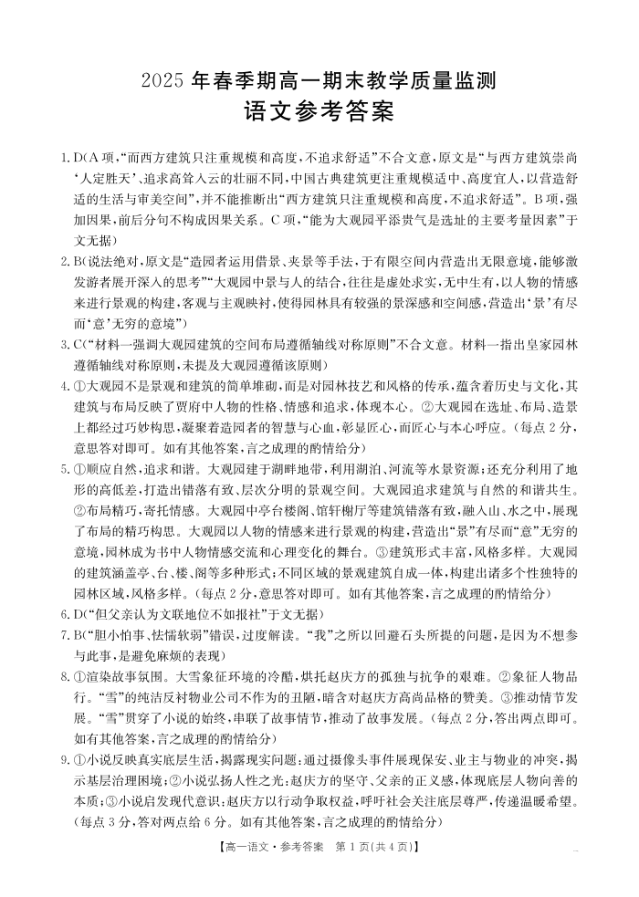 南宁市2024-2025学年高一下学期期末教学质量监测 语文答案.pdf