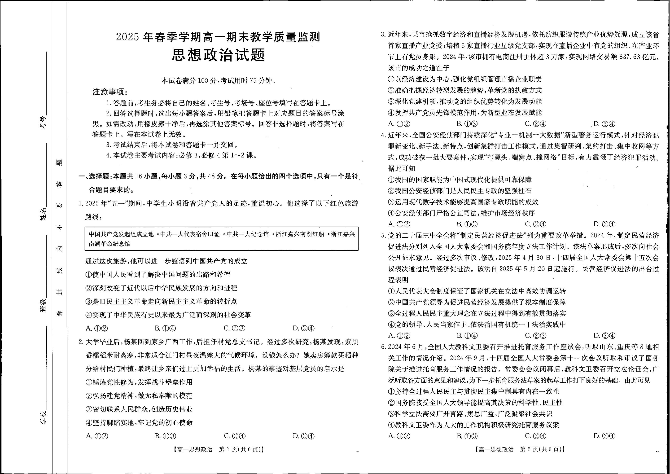 贺州市2024-2025学年高一下学期期末教学质量监测 政治.pdf