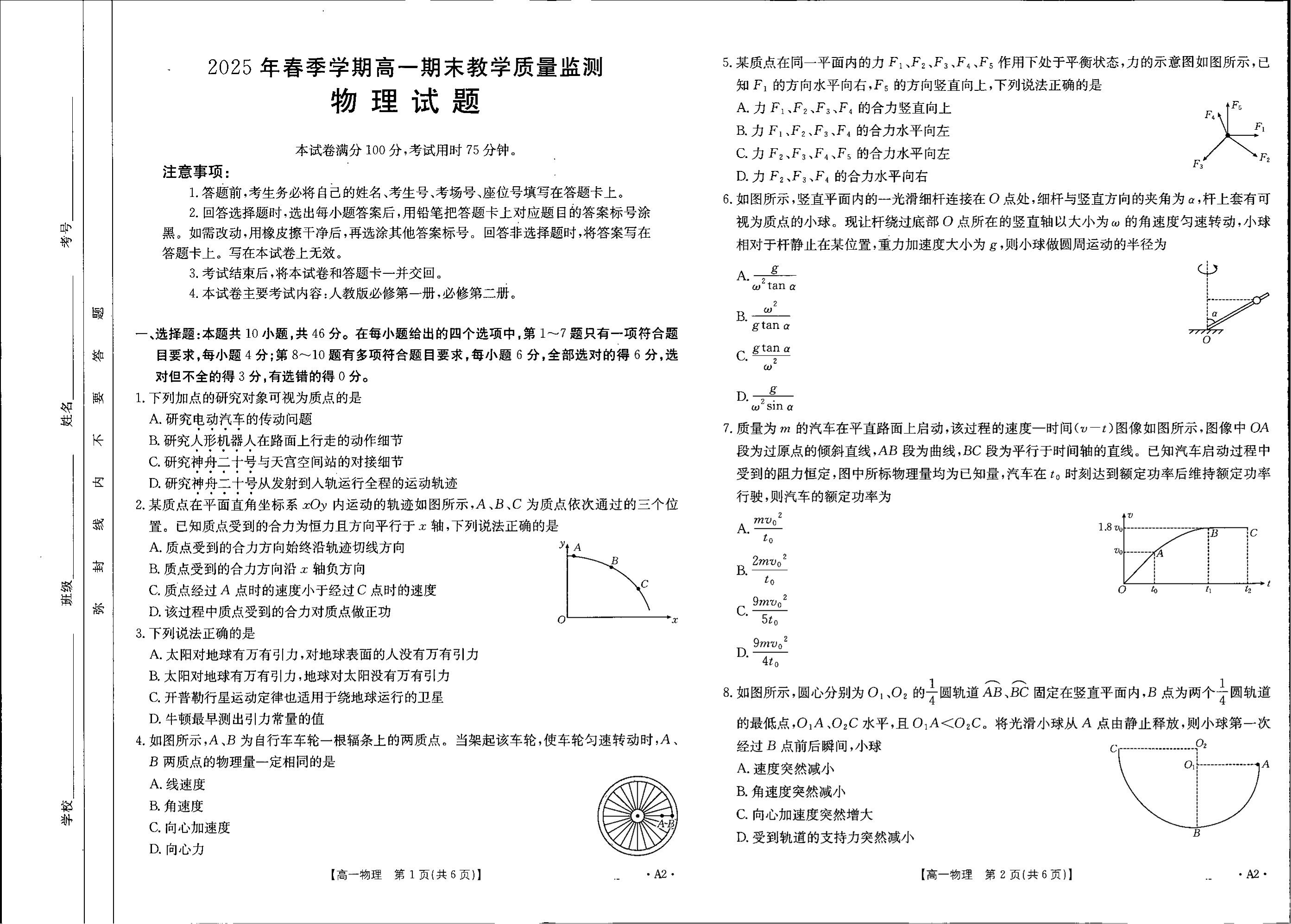 贺州市2024-2025学年高一下学期期末教学质量监测 物理.pdf