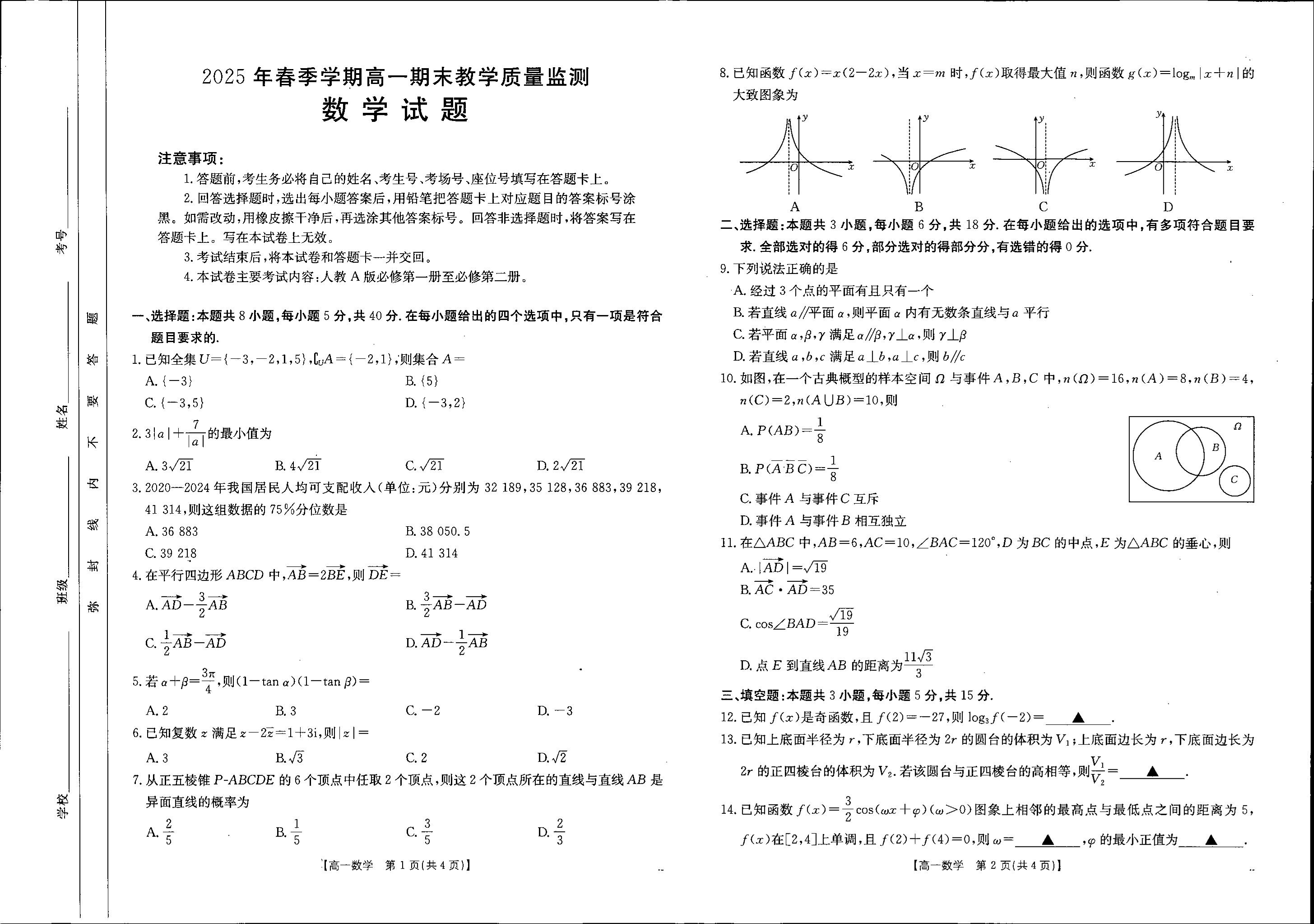 贺州市2024-2025学年高一下学期期末教学质量监测 数学.pdf