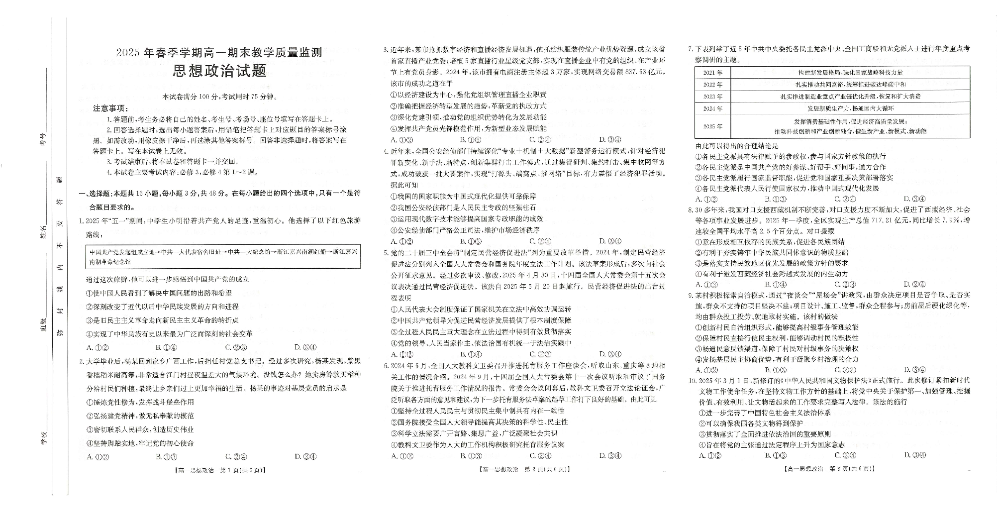 崇左市2024-2025学年高一下学期期末教学质量监测 政治.pdf