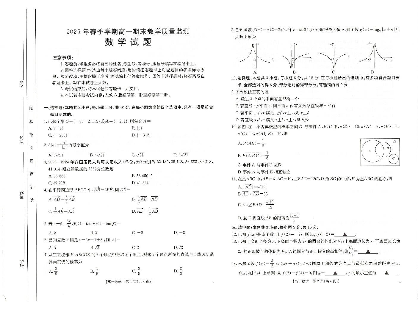 崇左市2024-2025学年高一下学期期末教学质量监测 数学.pdf