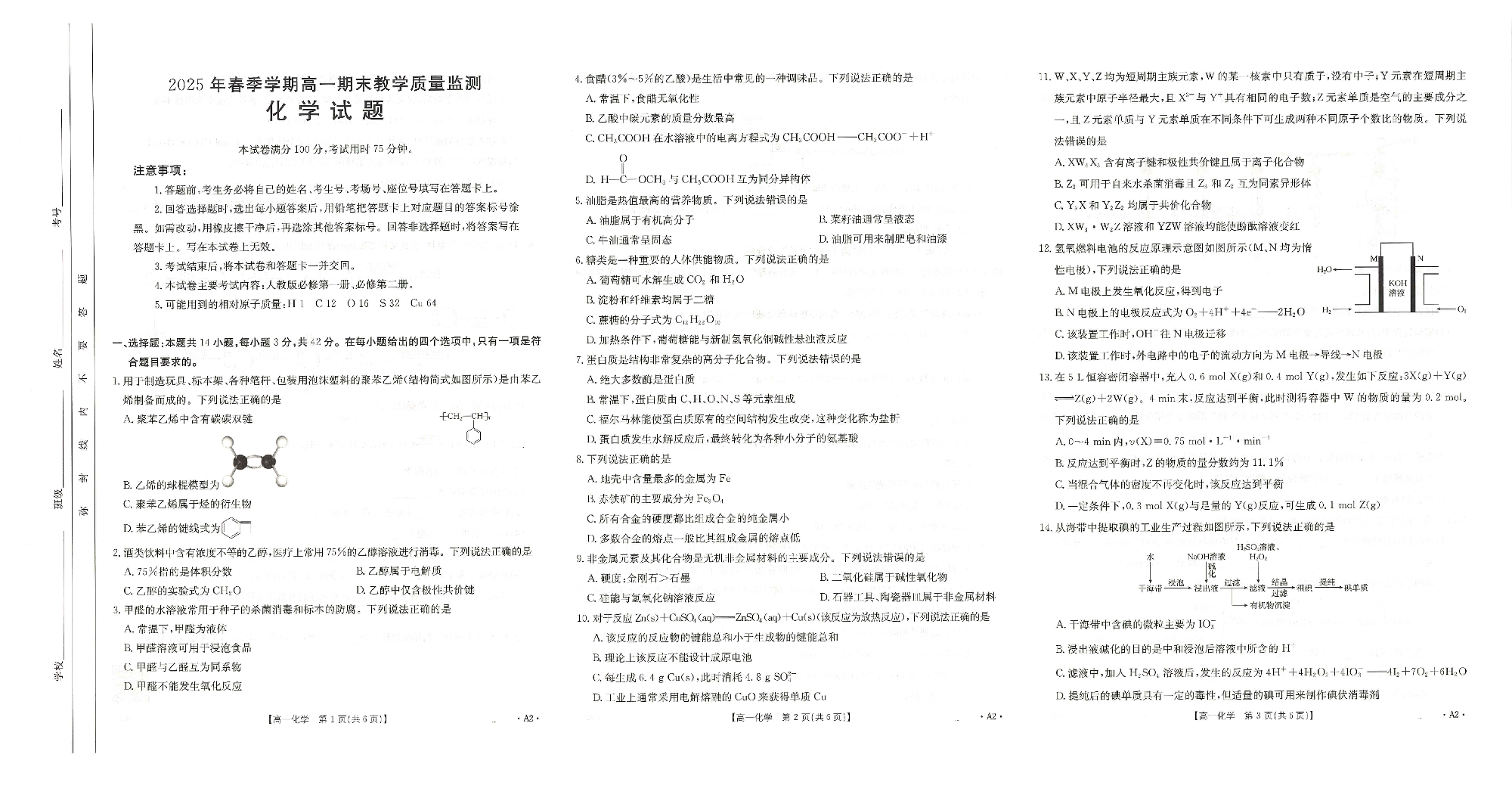 崇左市2024-2025学年高一下学期期末教学质量监测 化学.pdf