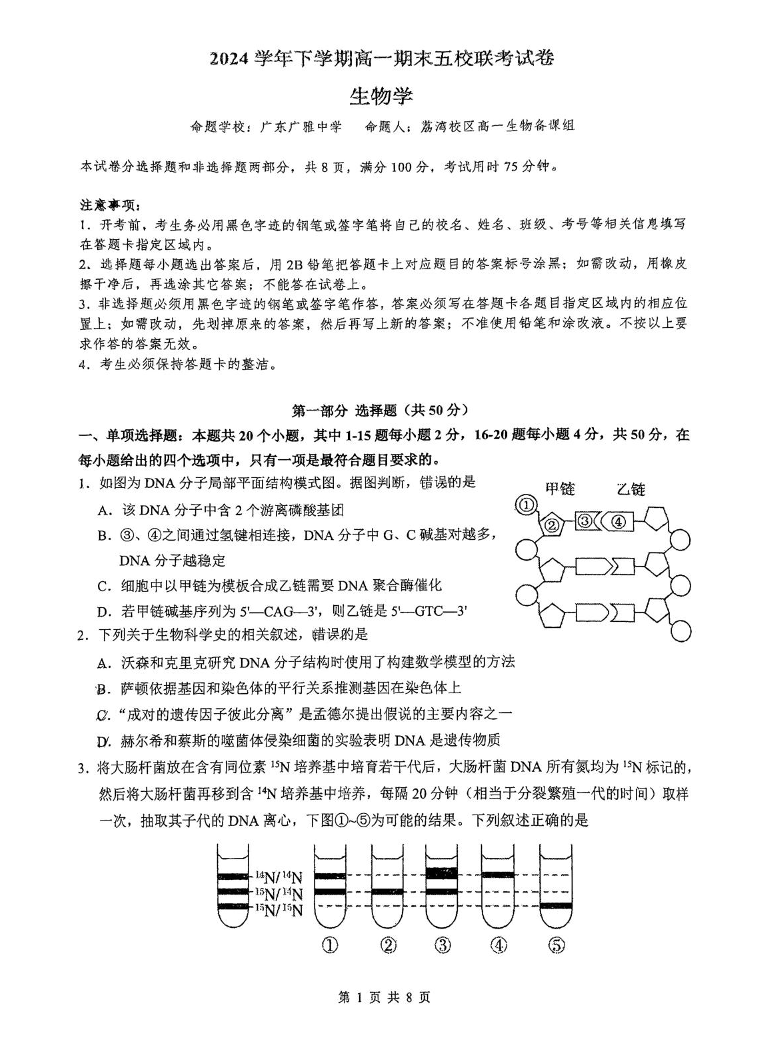 广东省五校联考2024学年下学期高一期末考试 生物试卷(含答案).pdf