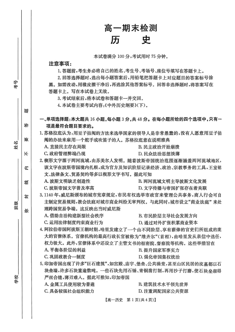 甘肃省白银市2024-2025学年高一下学期期末检测 历史试卷(含答案).pdf