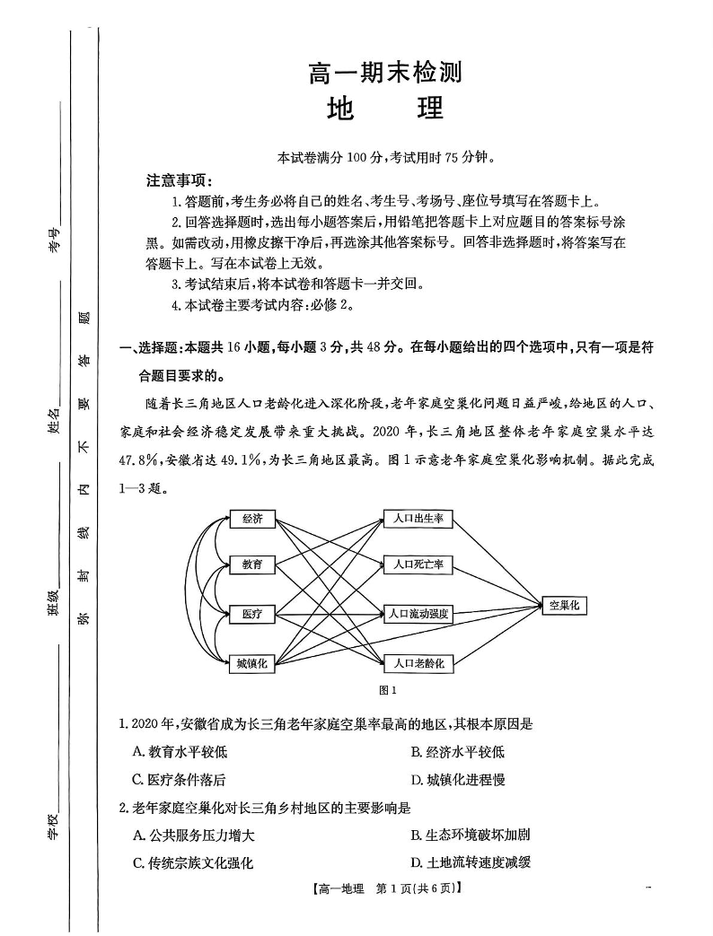 甘肃省白银市2024-2025学年高一下学期期末检测 地理试卷(含答案).pdf