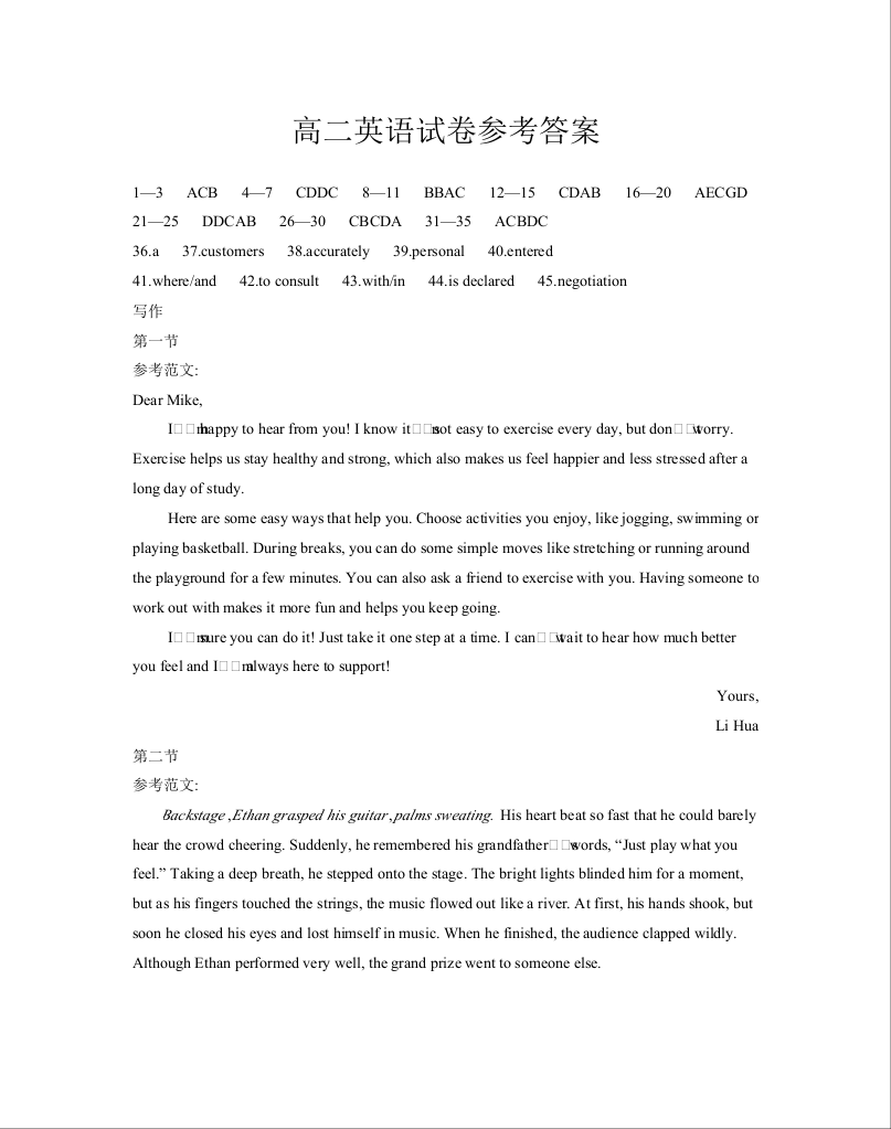 新疆2024-2025学年高二下学期7月联考试卷 英语答案.docx