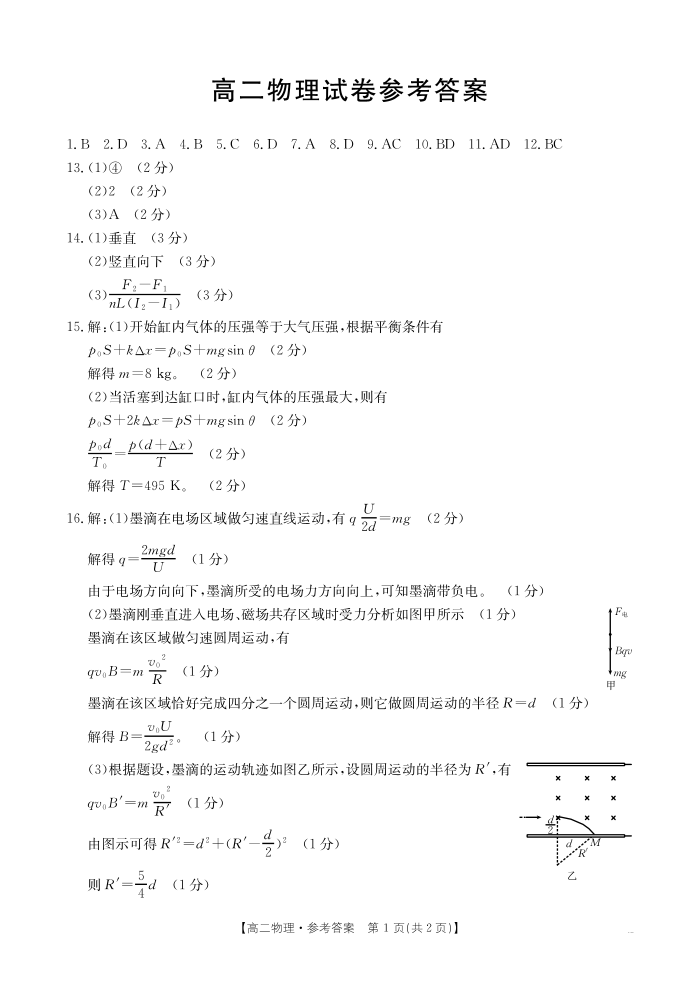 新疆2024-2025学年高二下学期7月联考试卷 物理答案.pdf