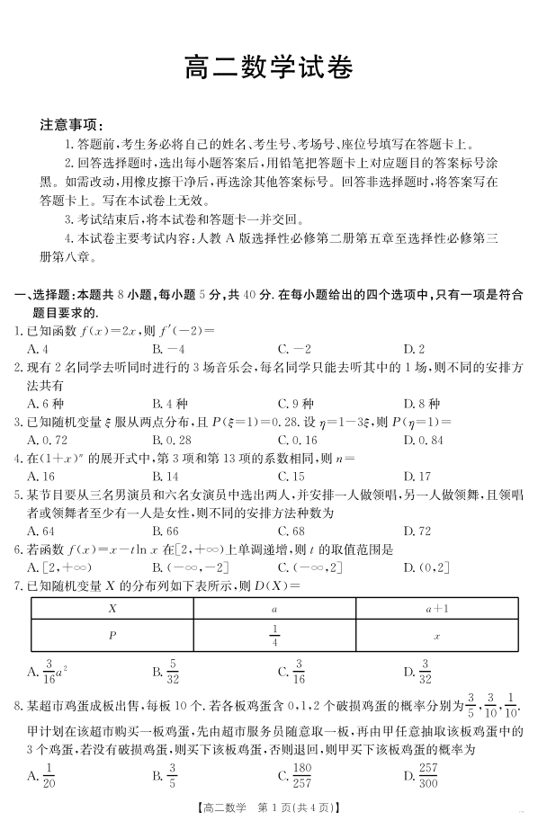 新疆2024-2025学年高二下学期7月联考试卷 数学.pdf