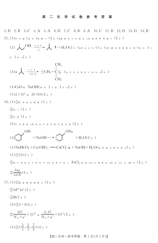新疆2024-2025学年高二下学期7月联考试卷 化学答案.pdf