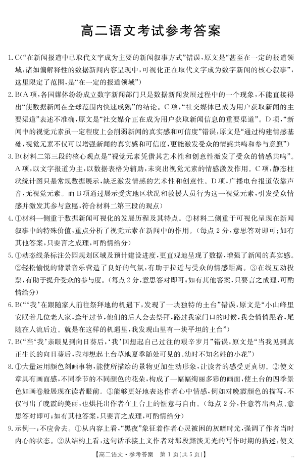内蒙古2024-2025学年高二下学期7月联考 语文答案.pdf
