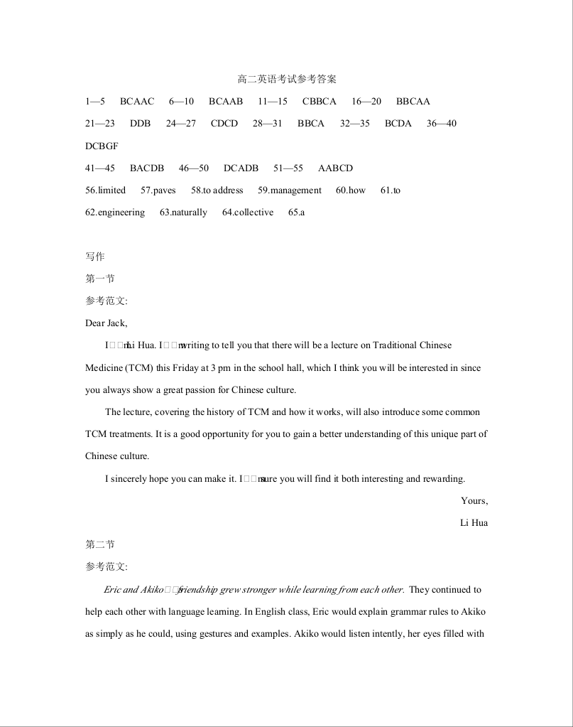 内蒙古2024-2025学年高二下学期7月联考 英语答案.docx
