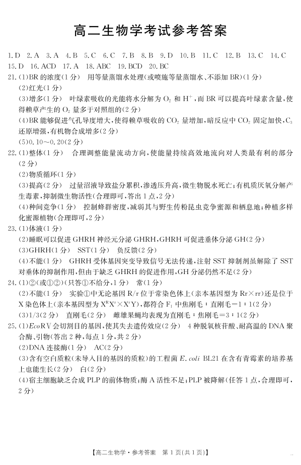 内蒙古2024-2025学年高二下学期7月联考 生物答案.pdf