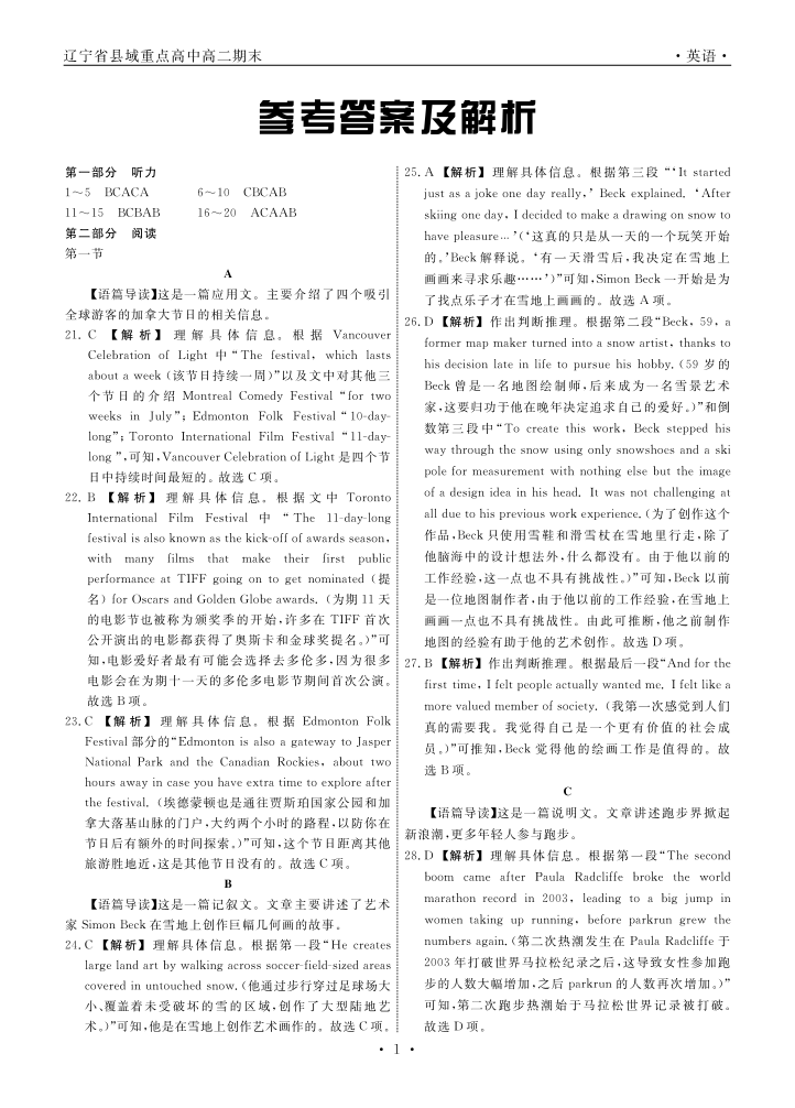 英语辽宁县域2024—2025学年度高二下学期期末考试答案.pdf