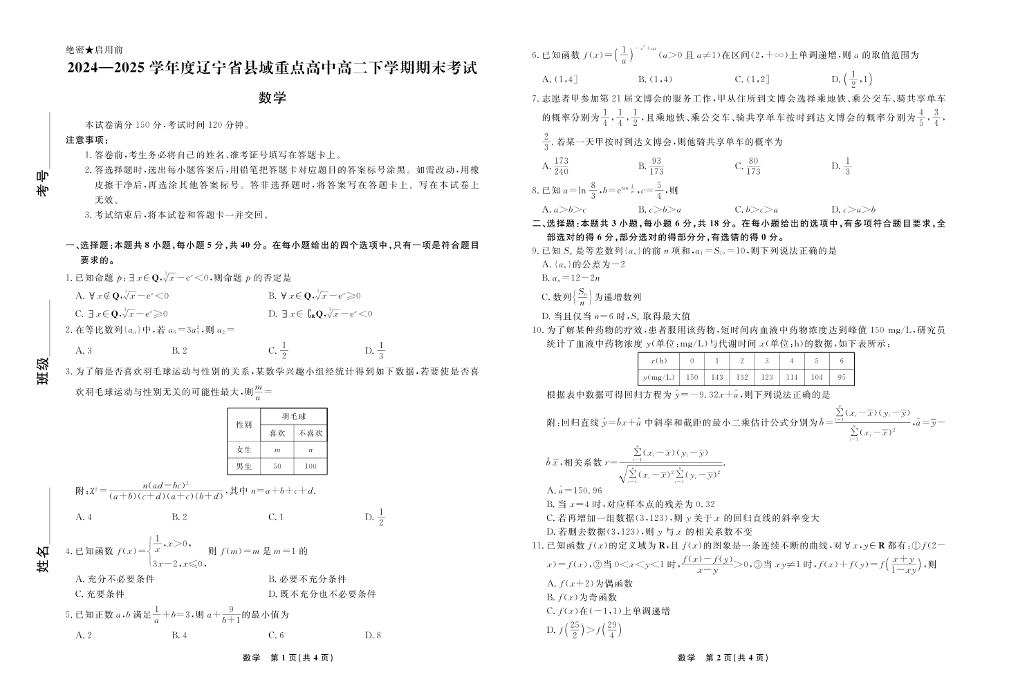 【数学】辽宁省县域重点高中2024-2025学年度高二下学期期末考试.pdf