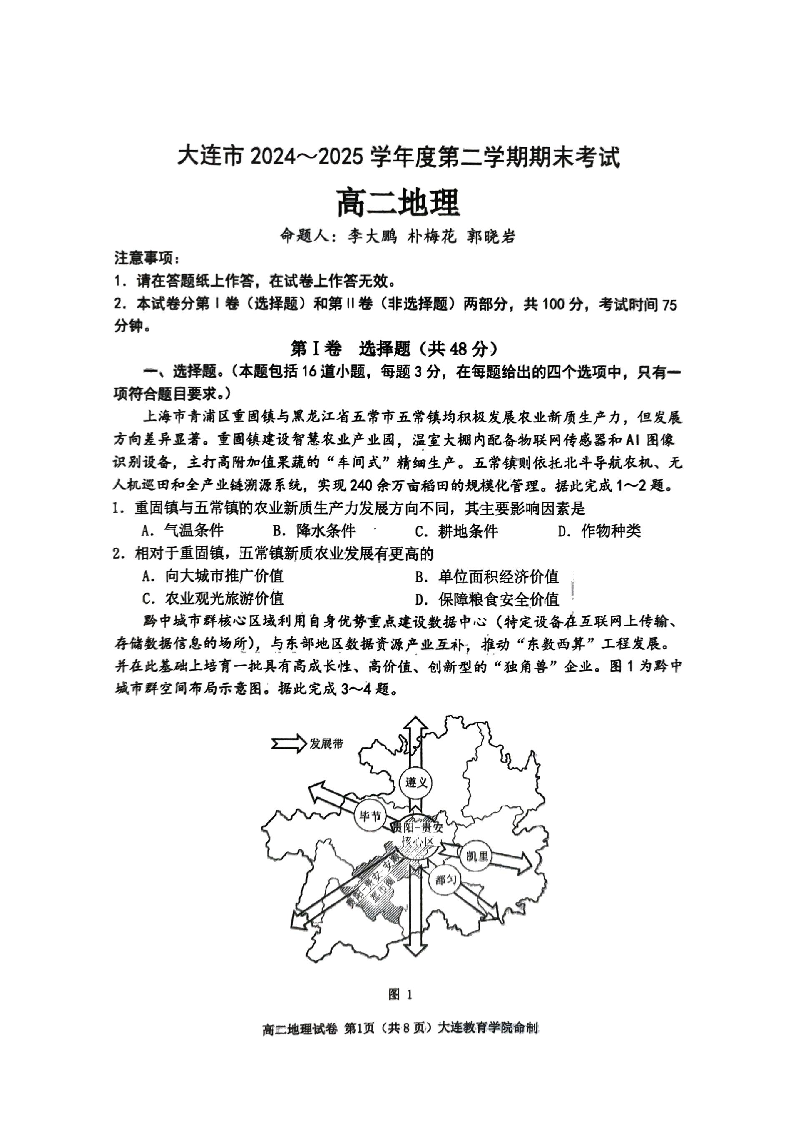 辽宁省大连市2024-2025学年度第二学期高二年级期末考试 地理试卷(含答案).pdf