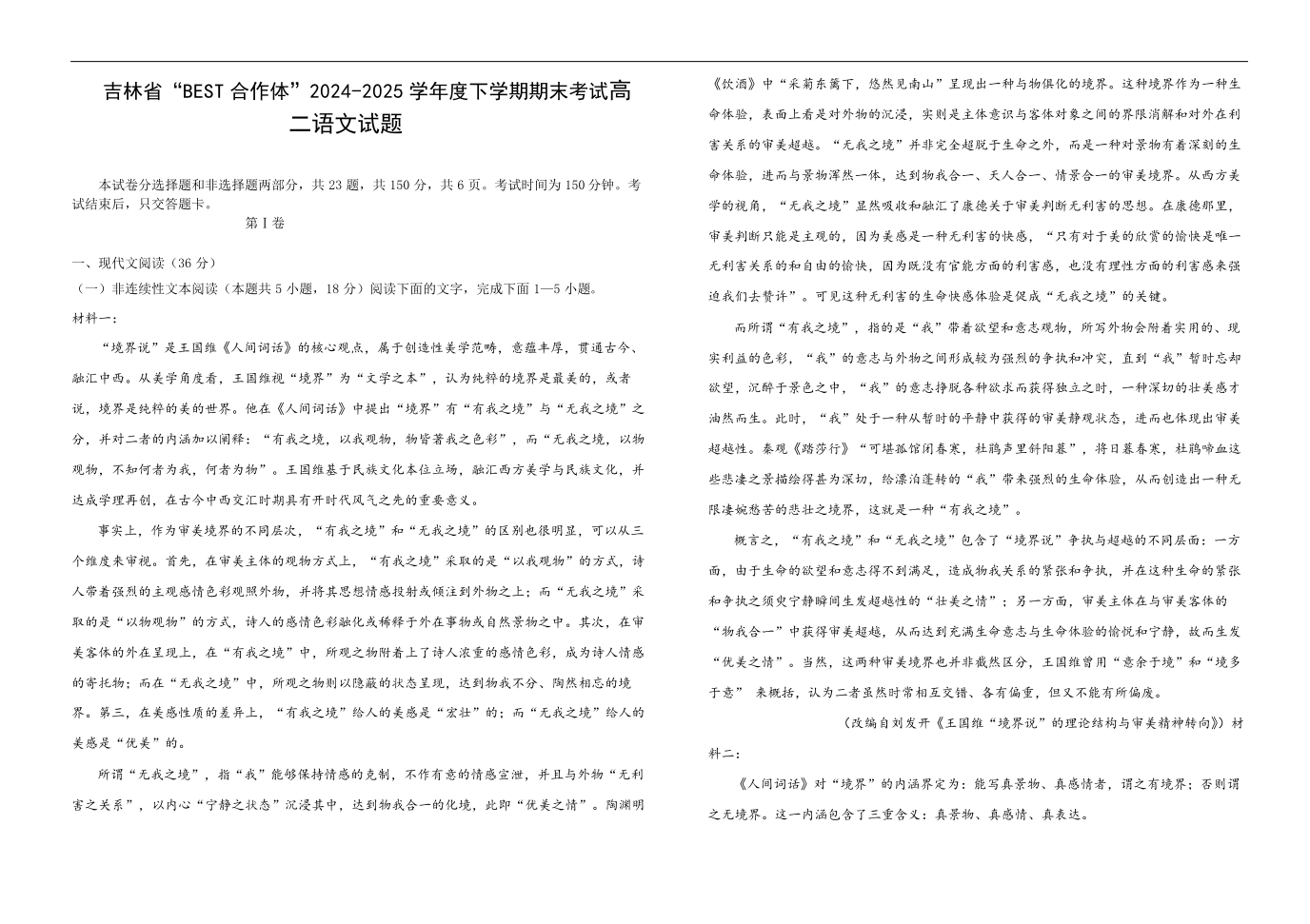 吉林省“BEST合作体”2024-2025学年高二下学期7月期末 语文.pdf