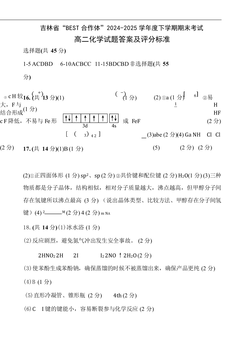 吉林省“BEST合作体”2024-2025学年高二下学期7月期末 化学答案.pdf