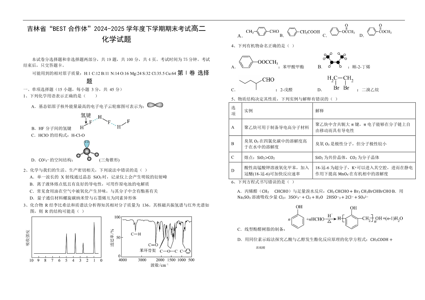 吉林省“BEST合作体”2024-2025学年高二下学期7月期末 化学.pdf