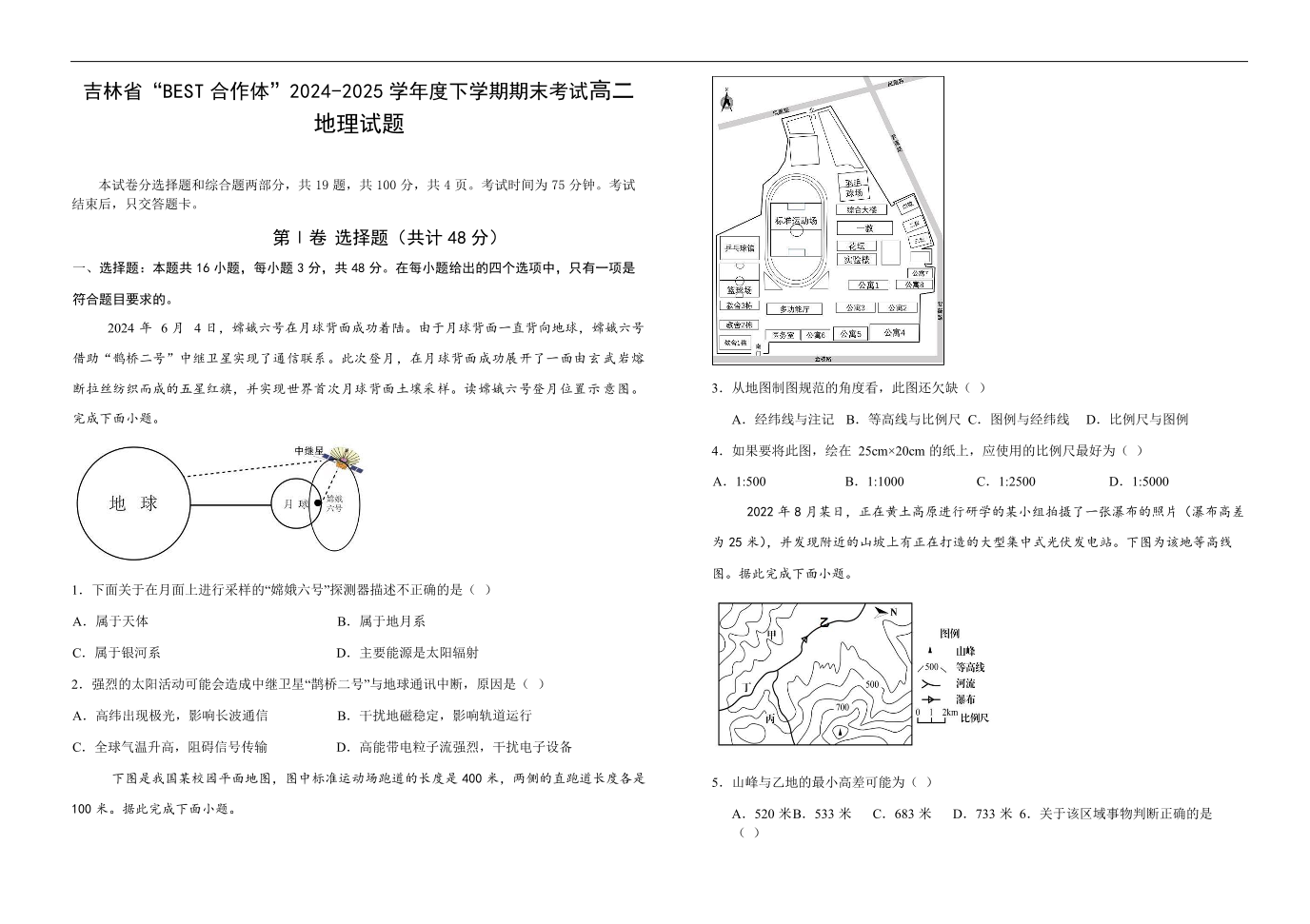 吉林省“BEST合作体”2024-2025学年高二下学期7月期末 地理.pdf