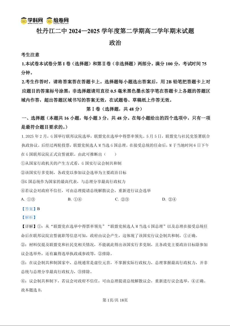 牡丹江二中2024一2025学年度第二学期高二学年期末 政治答案.docx