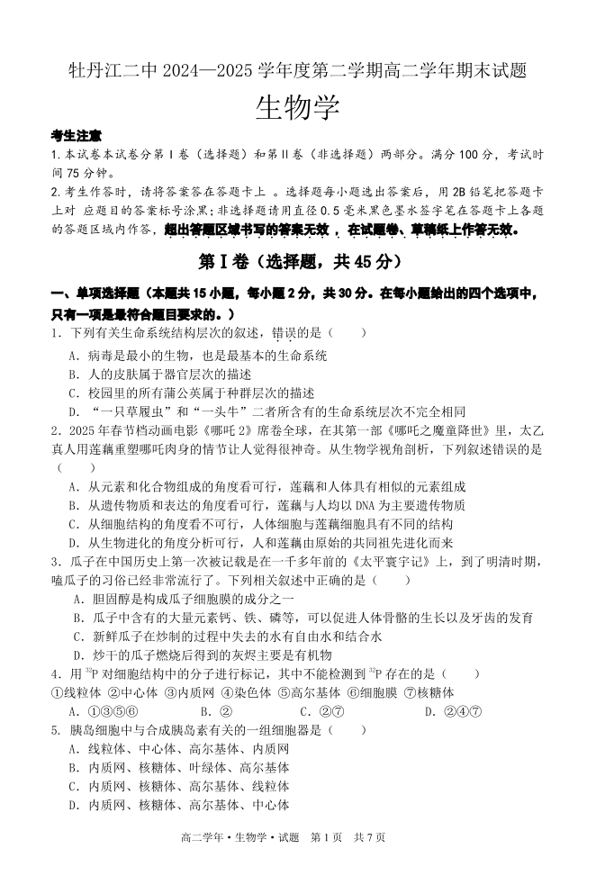 牡丹江二中2024一2025学年度第二学期高二学年期末 生物.pdf