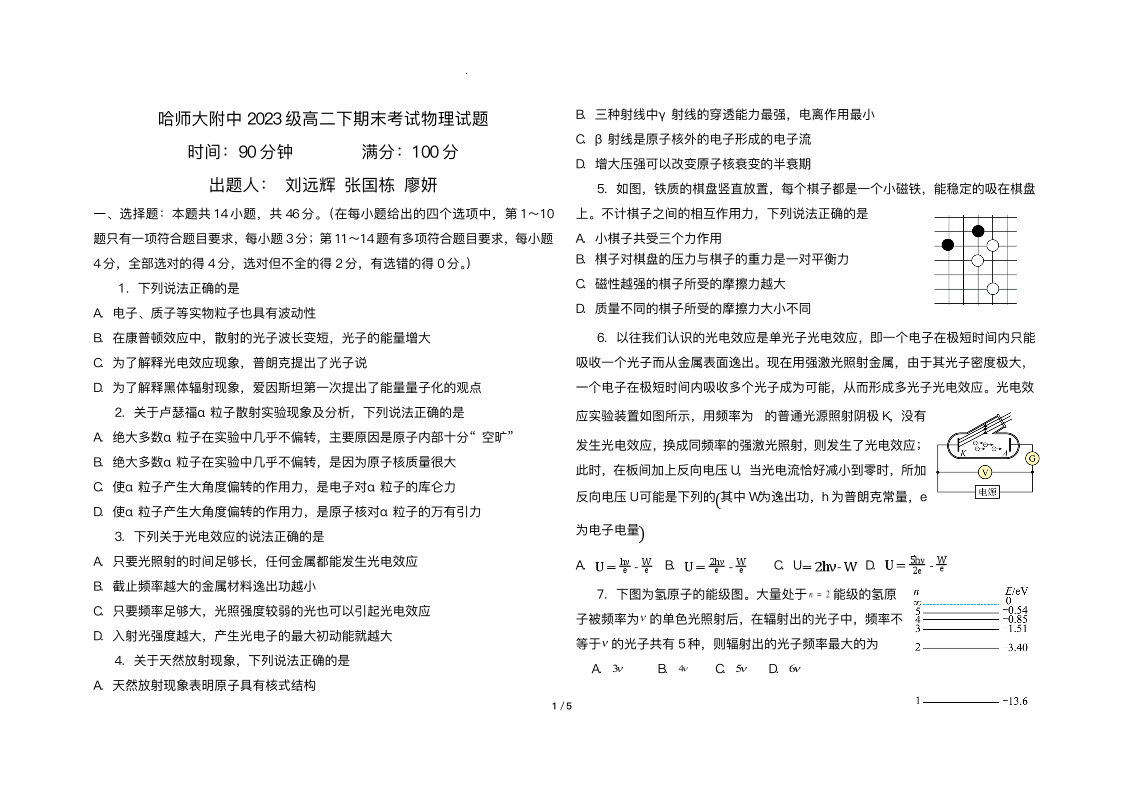 哈师大附中2024~2025学年度下学期高二期末考试 物理试卷(含答案).pdf