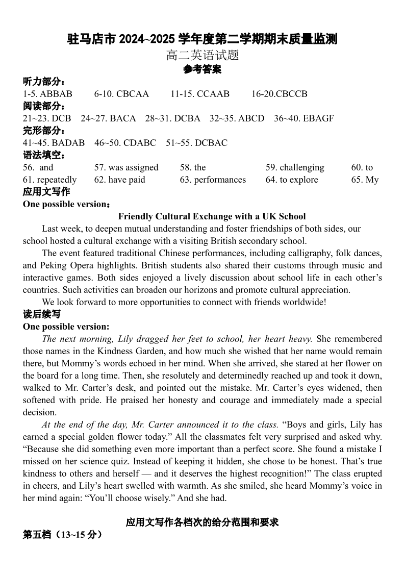 驻马店市2024~2025学年度第二学期期末质量监测 英语答案.pdf