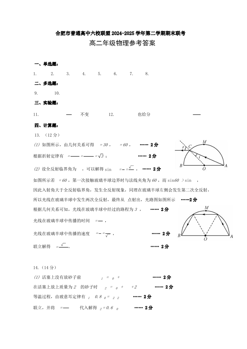 合肥市普通高中六校联盟2024-2025学年第二学期高二年级期末联考 物理答案.pdf