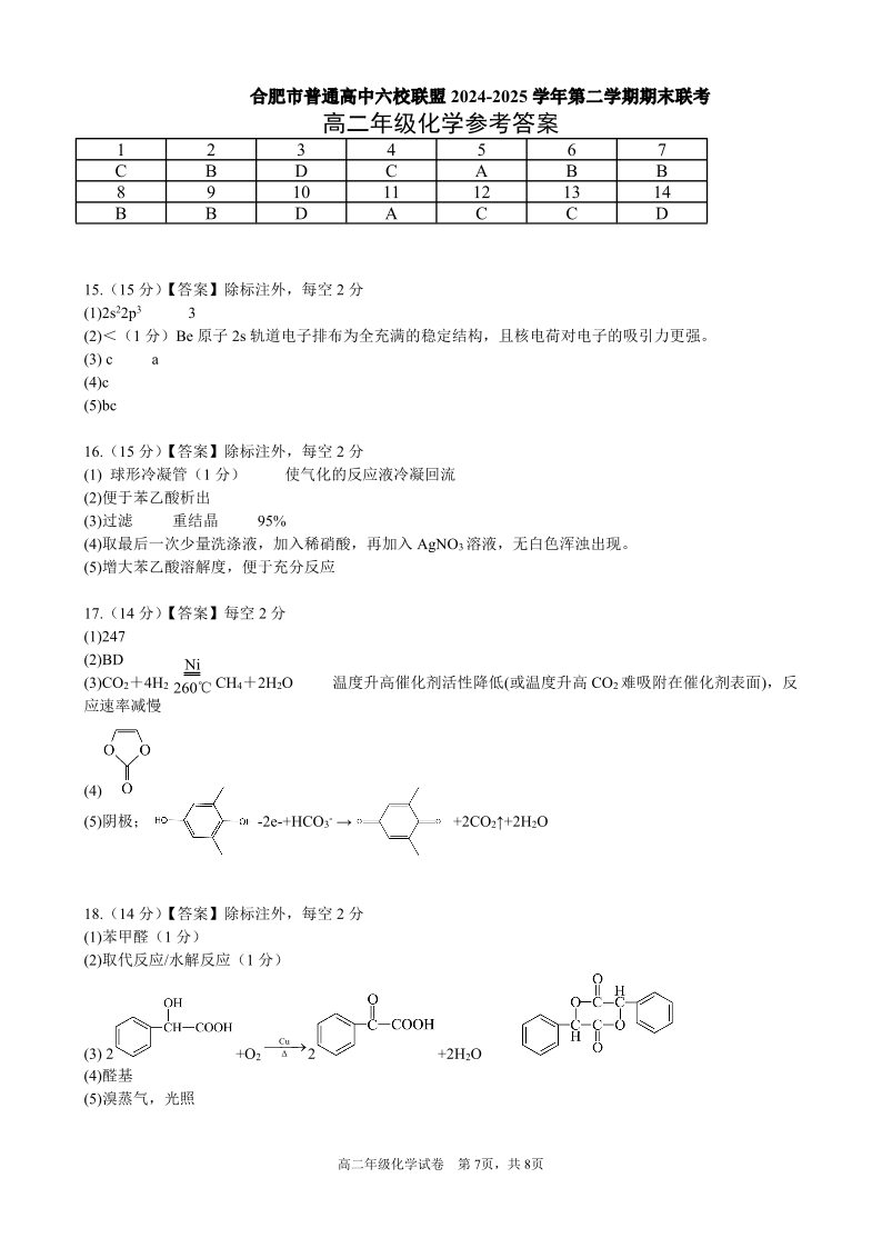 合肥市普通高中六校联盟2024-2025学年第二学期高二年级期末联考 化学答案.pdf