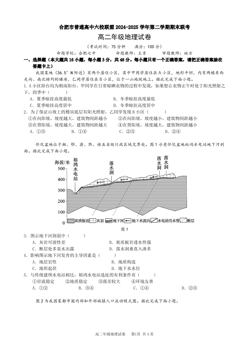 合肥市普通高中六校联盟2024-2025学年第二学期高二年级期末联考 地理.pdf