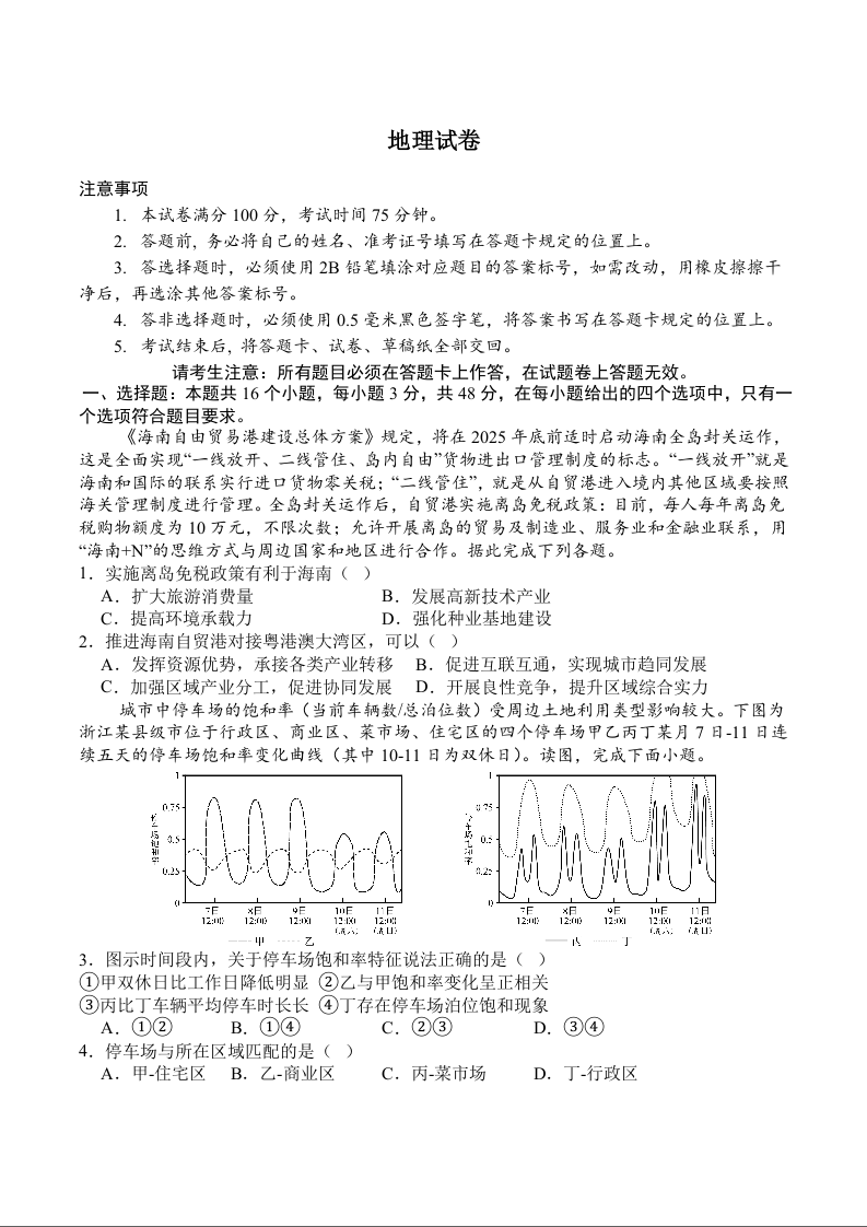 2025年春季学期三地高2027届期末统测 地理试卷(含答案).docx
