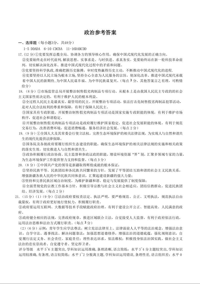 湖南省邵阳市新邵县2024-2025学年高一下学期期末质量检测 政治答案.docx