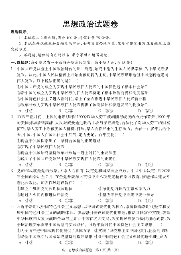 湖南省邵阳市新邵县2024-2025学年高一下学期期末质量检测 政治.pdf