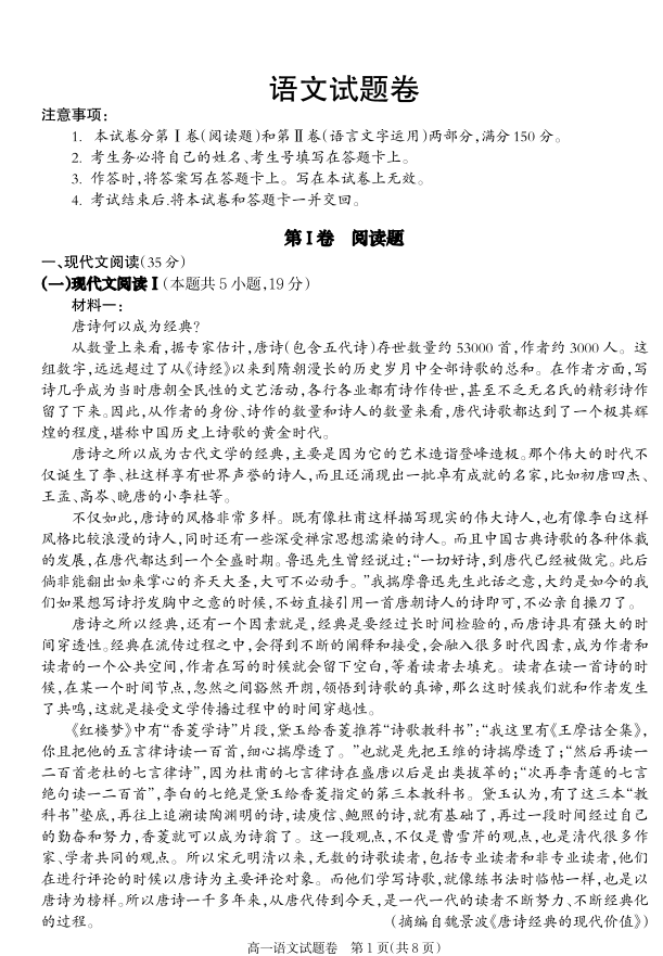 湖南省邵阳市新邵县2024-2025学年高一下学期期末质量检测 语文.pdf